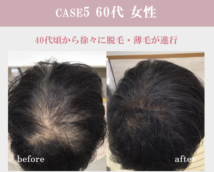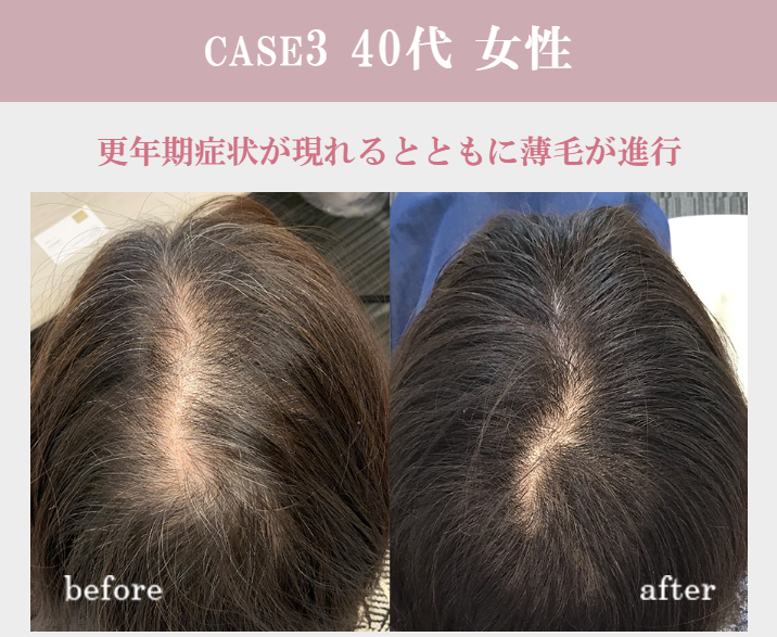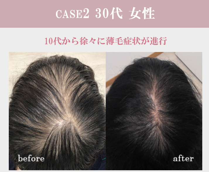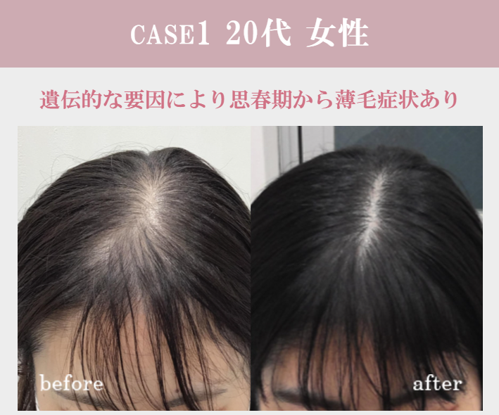 初めは不安でしたが、3ヶ月目ぐらいから効果を感じ、1年で確実に毛量が増えました。スタッフの方々もいつも丁寧で、治療に踏み切った自分を褒めたいです。